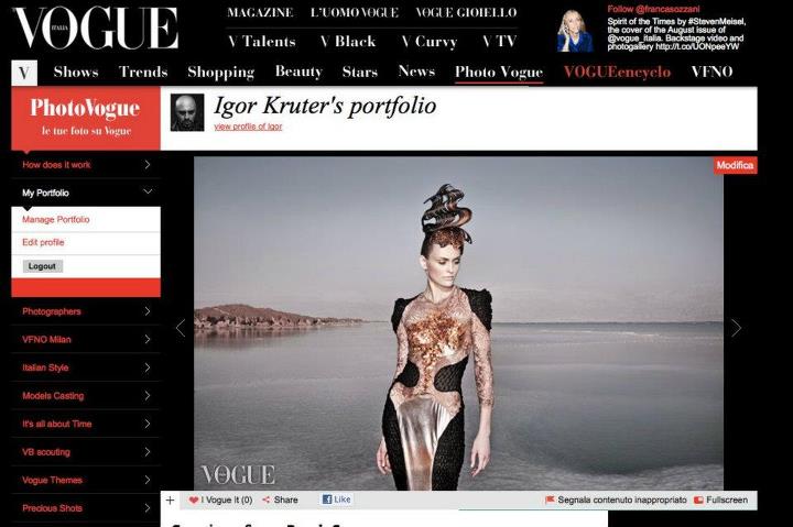 вся коллекция фотографа Игоря Крутера с Ларисиными работами опять опубликована в Vogue - online версии журнала. Лариса также и стилист photoshoots, что означает, что она выбирает где и как модель будет сниматься, в какой позе, при каком освещении и т.д. - нечто вроде режиссера при с'емках фильма.